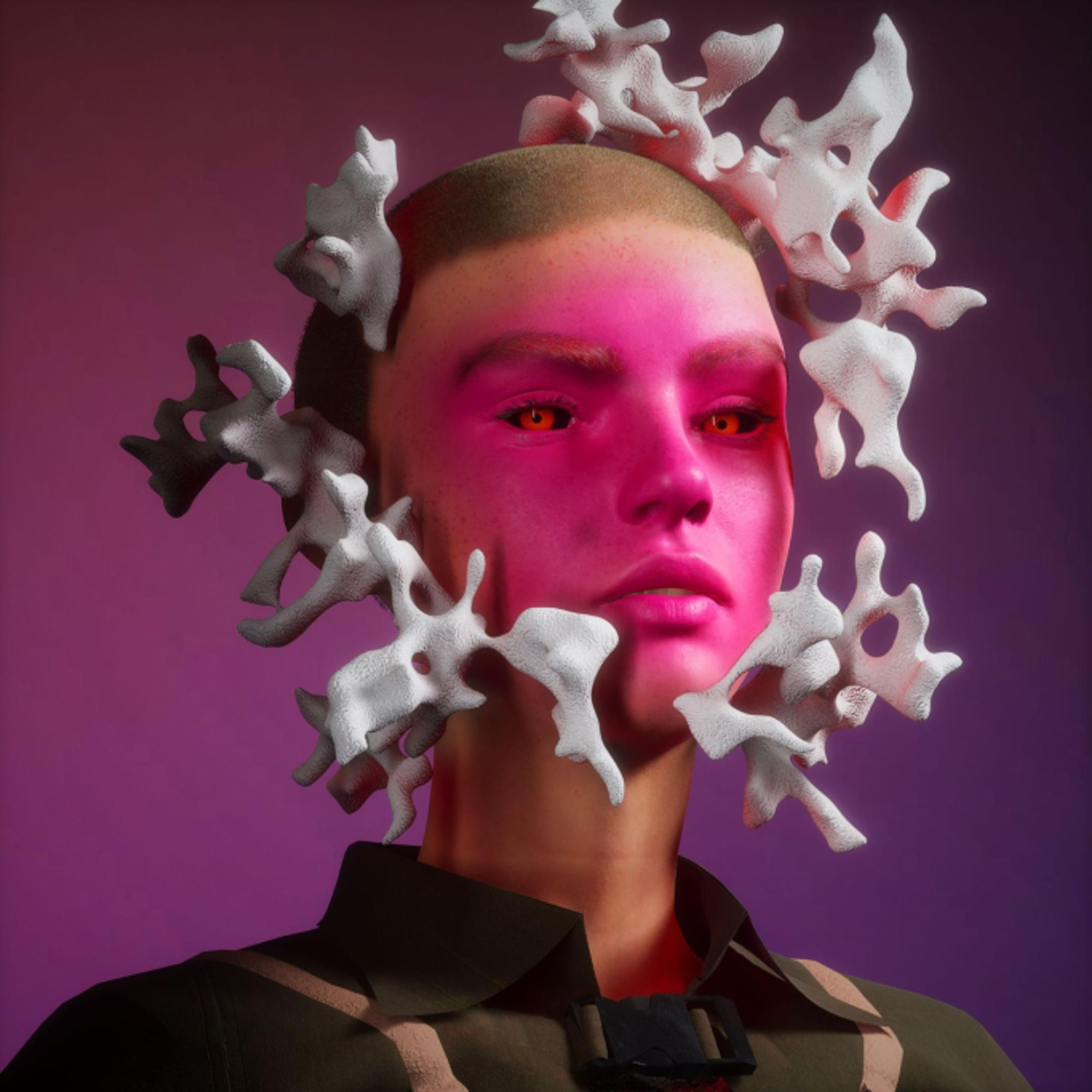 If the eyes are windows to the soul. What do digital eyes connect us to? This collection features avatars, the uncanny valley, masks and simulations using the human body as a jumping off point.